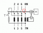 Na N není normální kontakt, ale N pól chrániče spíná jako první a rozepíná jako poslední.