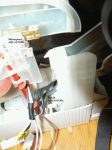 Kolegové nemíchají. Také jsem čekal kdovíjak sofistikované řešení a přitom tím druhým pláštěm dvouplášťové hadice teče volně voda do vaničky pod myčku. Jakmile nateklá voda zdvihne plovák, přenese se popud tyčkou na mikrospínač. Tím se vypne napájení cívky aquastopového ventilu -  tak se zastaví přívodní voda. Zároveň se aktivuje výpustní čerpadlo a blokuje se chod myčky. Dráty v hadici jsou k zapínání aquastopového ventilu.