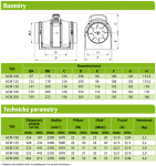 Potrubní diagonální plastový ventilátor ACM vhodný pro kruhové vzduchotechnické rozvody větších délek, odsávání z více míst, 230V, IP44. Montáž v libovolné poloze. Dvourychlostní ventilátor. Tichý provoz. Možnost demontáže motoru bez nutnosti demontáže potrubí. Vhodný pro toalety, koupelny, komerční aplikace.