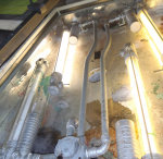 U potiskovacího stroje potřebujeme vyměnit svítidlo s vadným předřadníkem, které je umístěno v prostředí s nebezpečím výbuchu. Od výrobce původního svítidla máme zakoupeno nové se stejnými vlastnostmi, ale jiný model. Původní se už nevyrábí. Instalace je ze zatěsněného rozvaděče vedena vodiči v trubkách - viz foto.